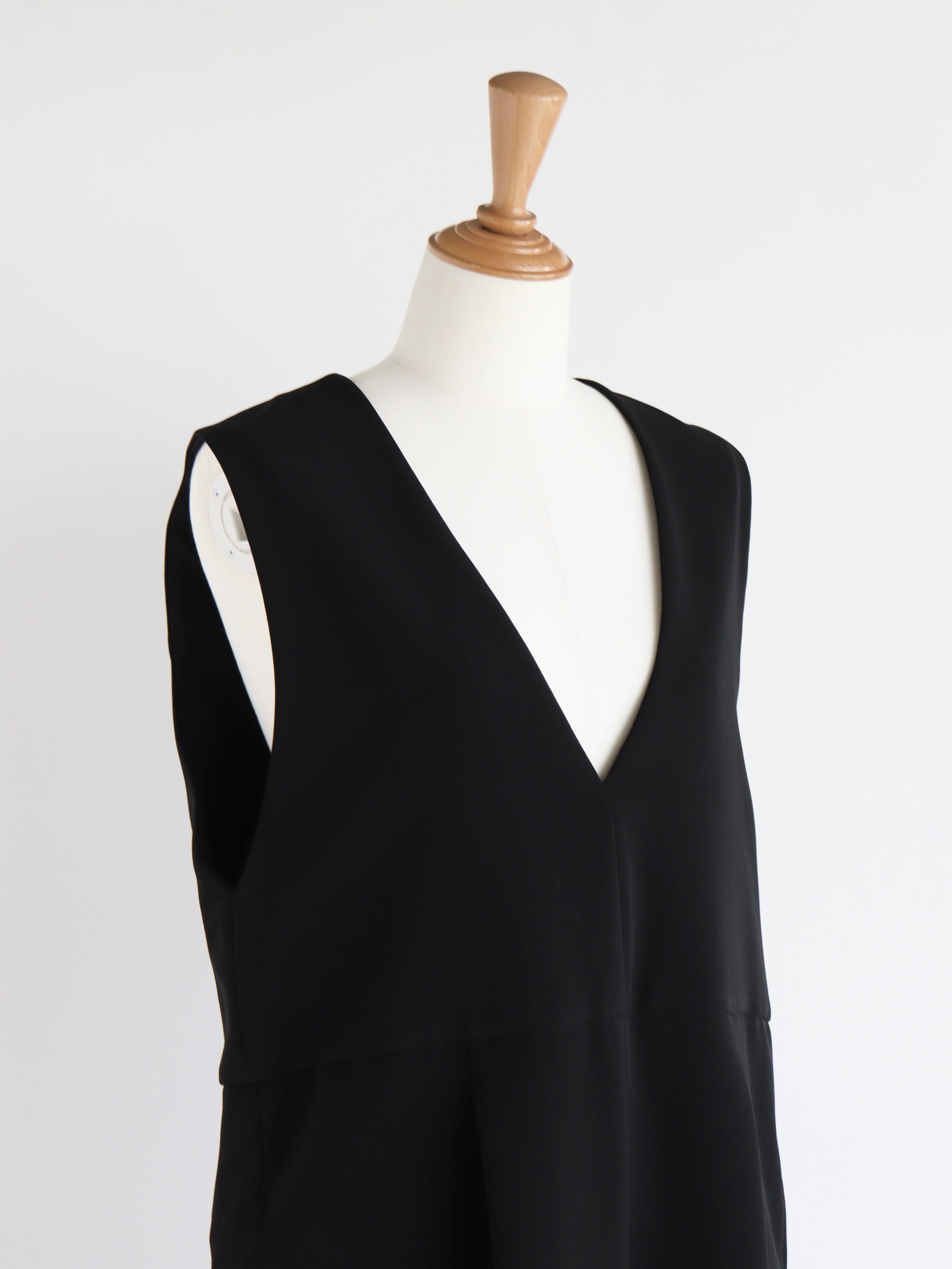とろみのある生地を使用し、流れるようなラインのゆったりとしたサロペット。体のラインを拾わないので、すっきりと着て頂けます。