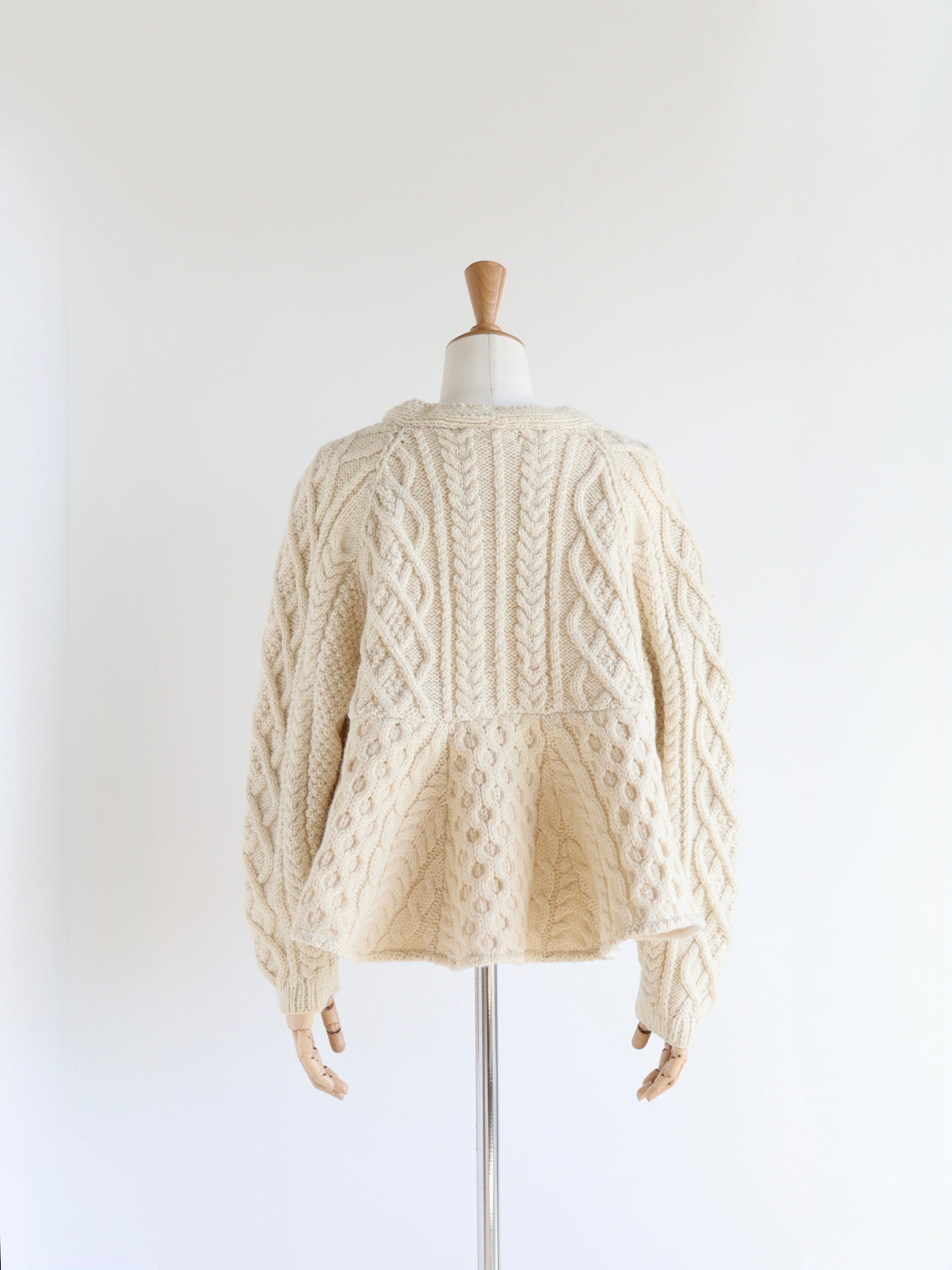 厳選したVINTAGEのフィッシャーマンニットを2〜3着使用し製作したペプラムリメイクニットです。