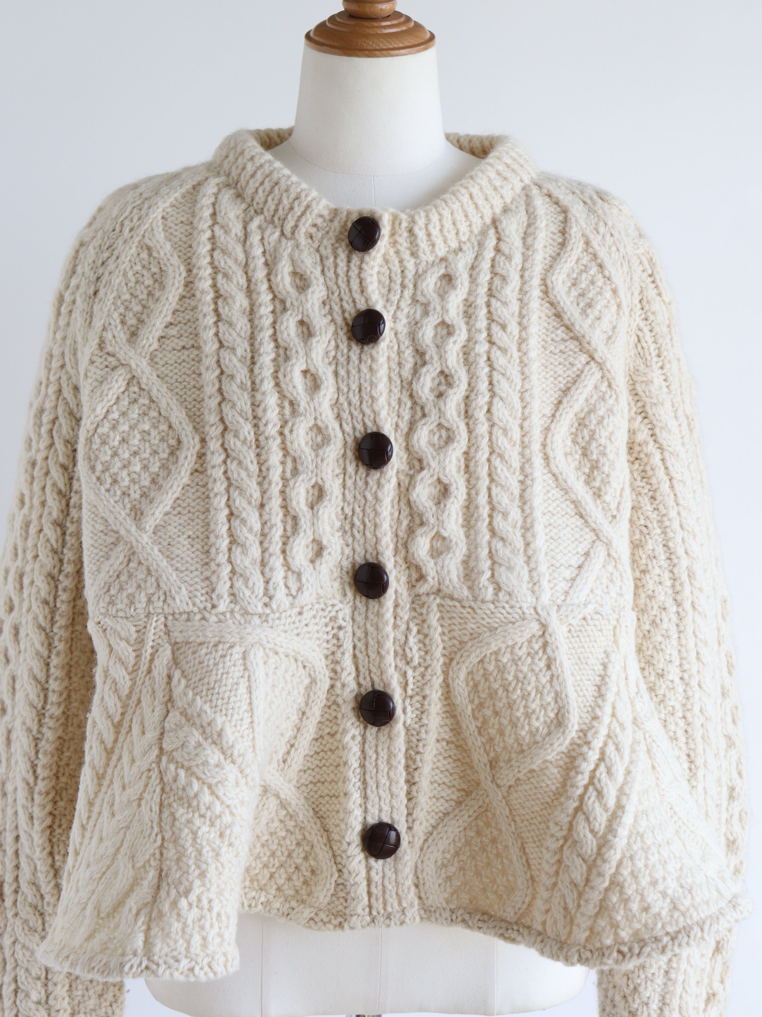 厳選したVINTAGEのフィッシャーマンニットを2〜3着使用し製作したペプラムリメイクニットです。