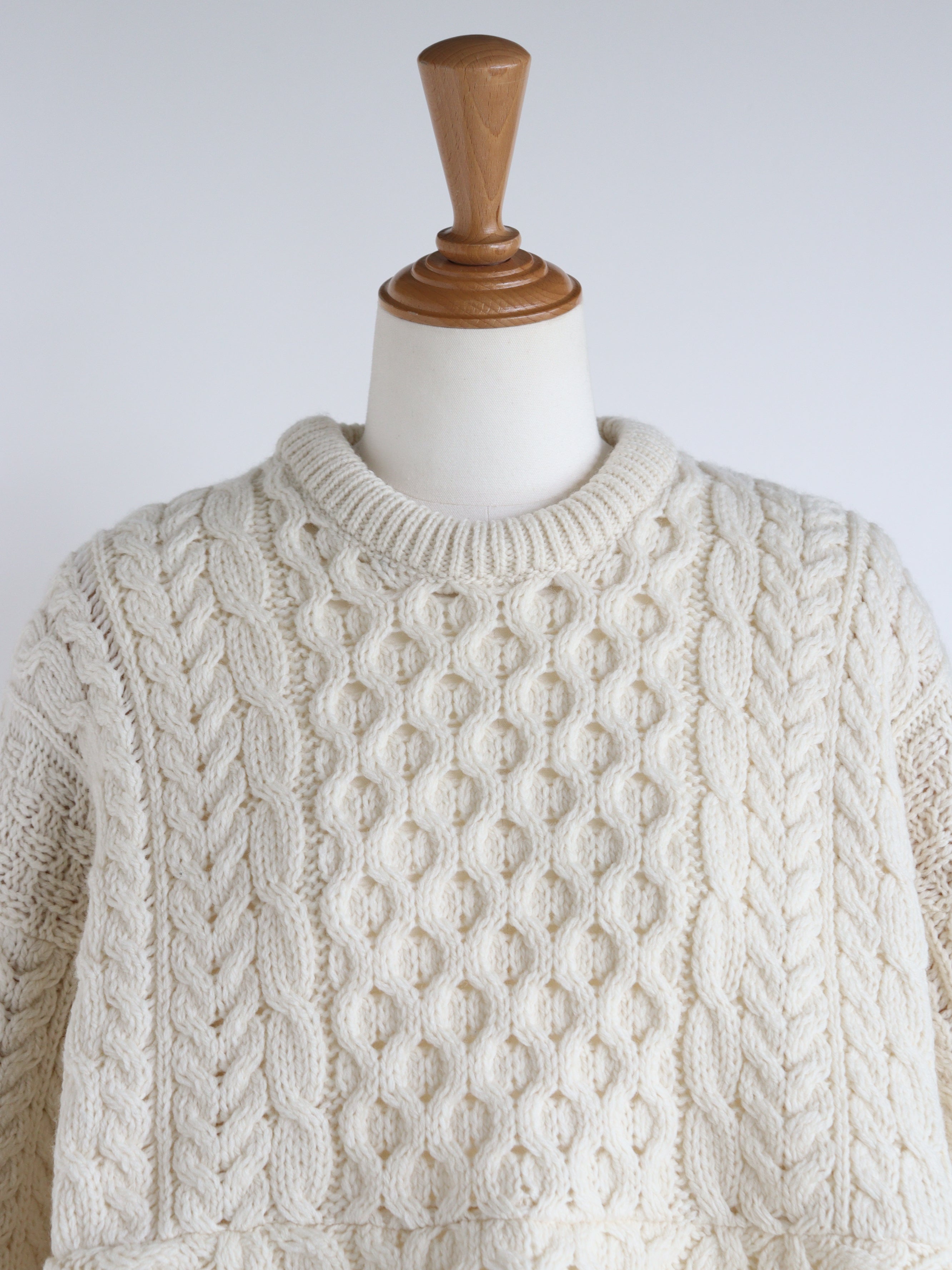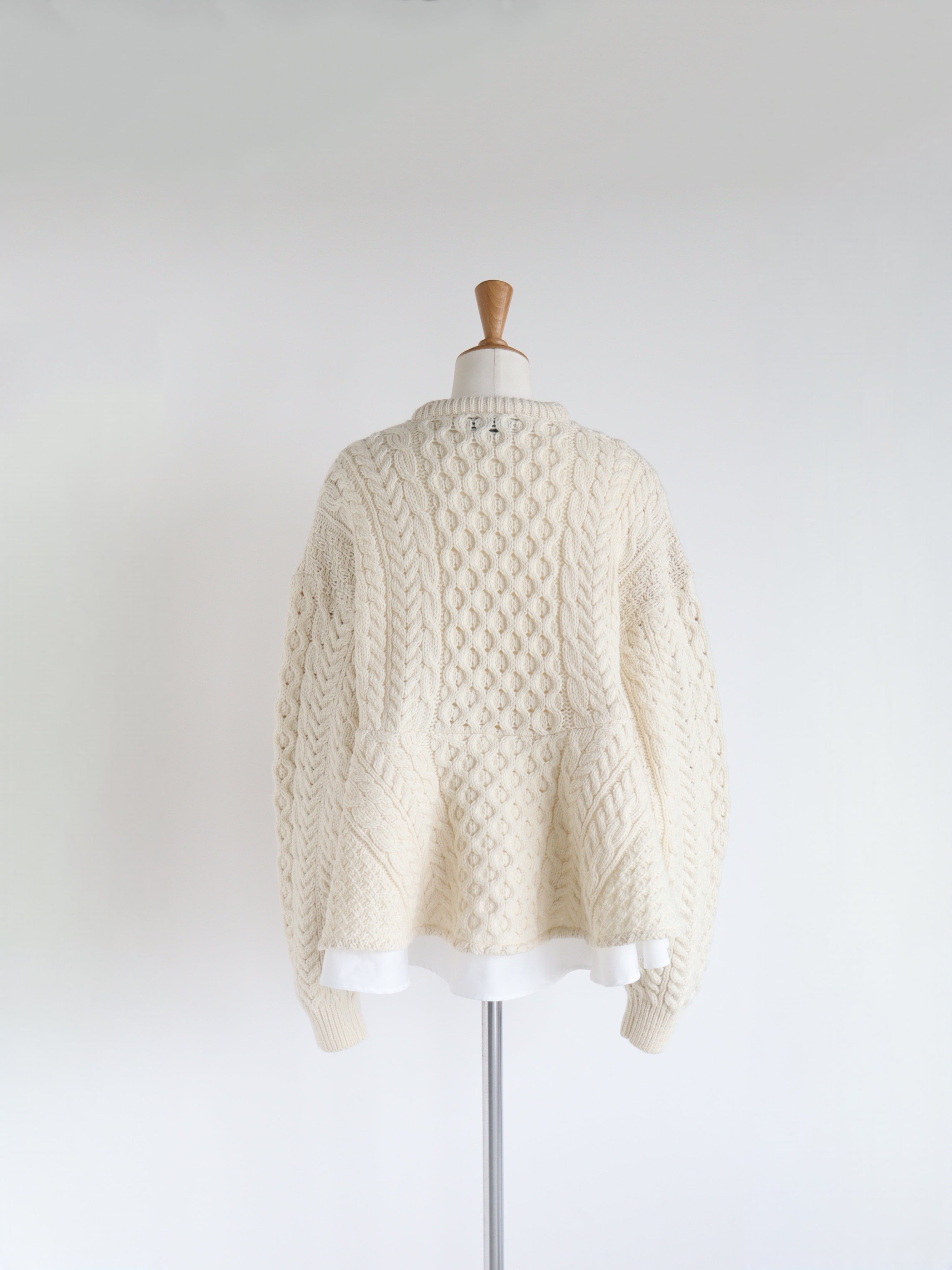 厳選したVINTAGEのフィッシャーマンニットを2〜3着使用し製作したペプラムリメイクニットです。