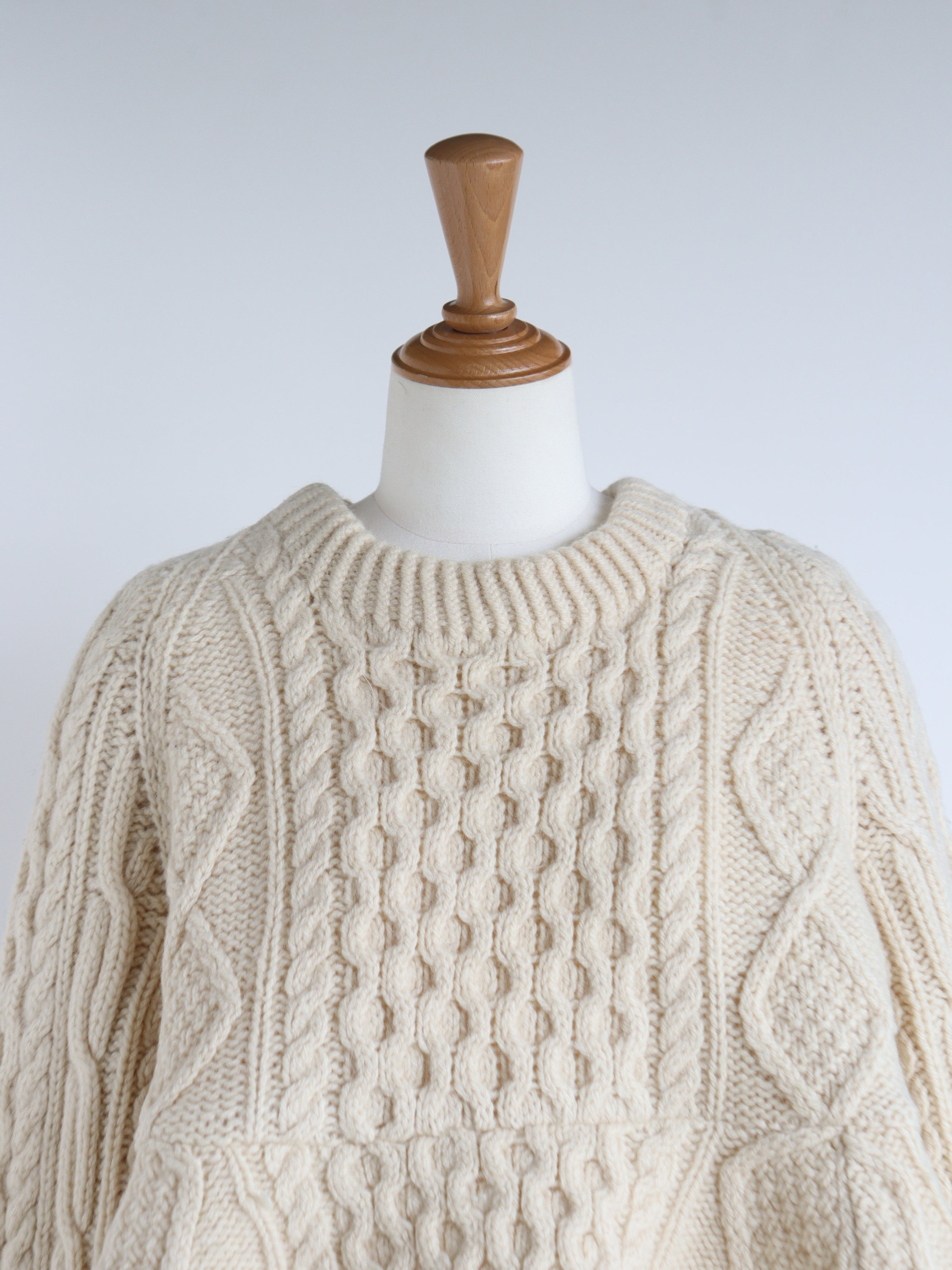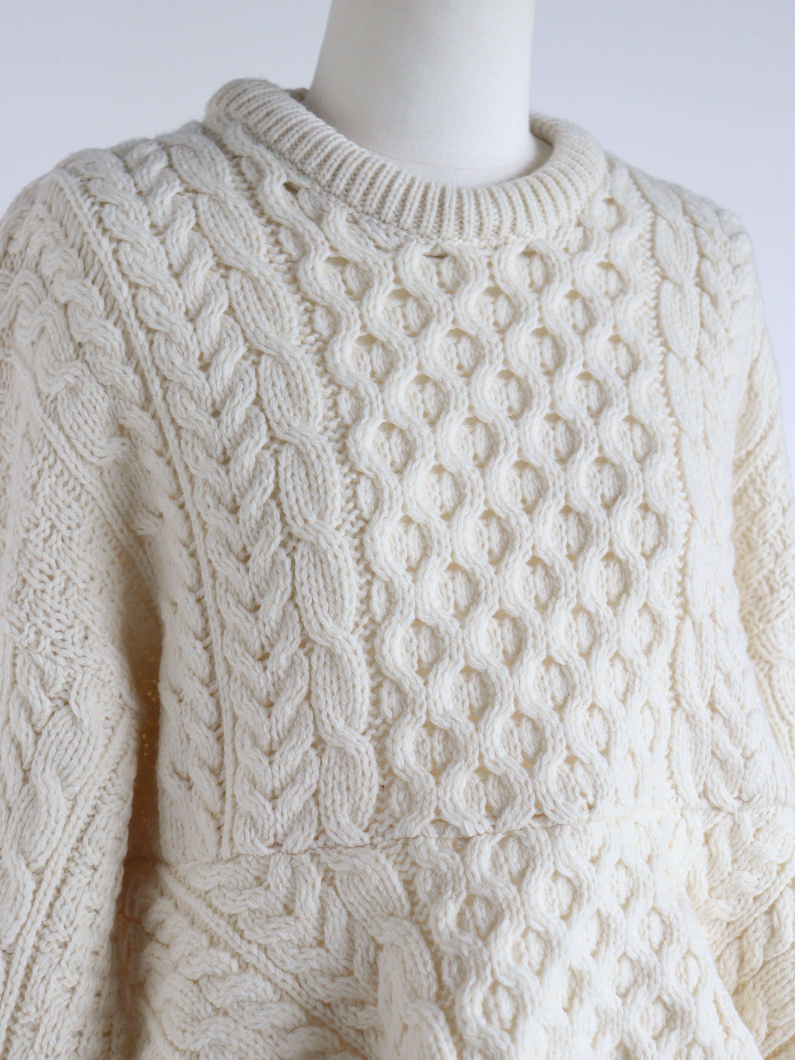 厳選したVINTAGEのフィッシャーマンニットを2〜3着使用し製作したペプラムリメイクニットです。