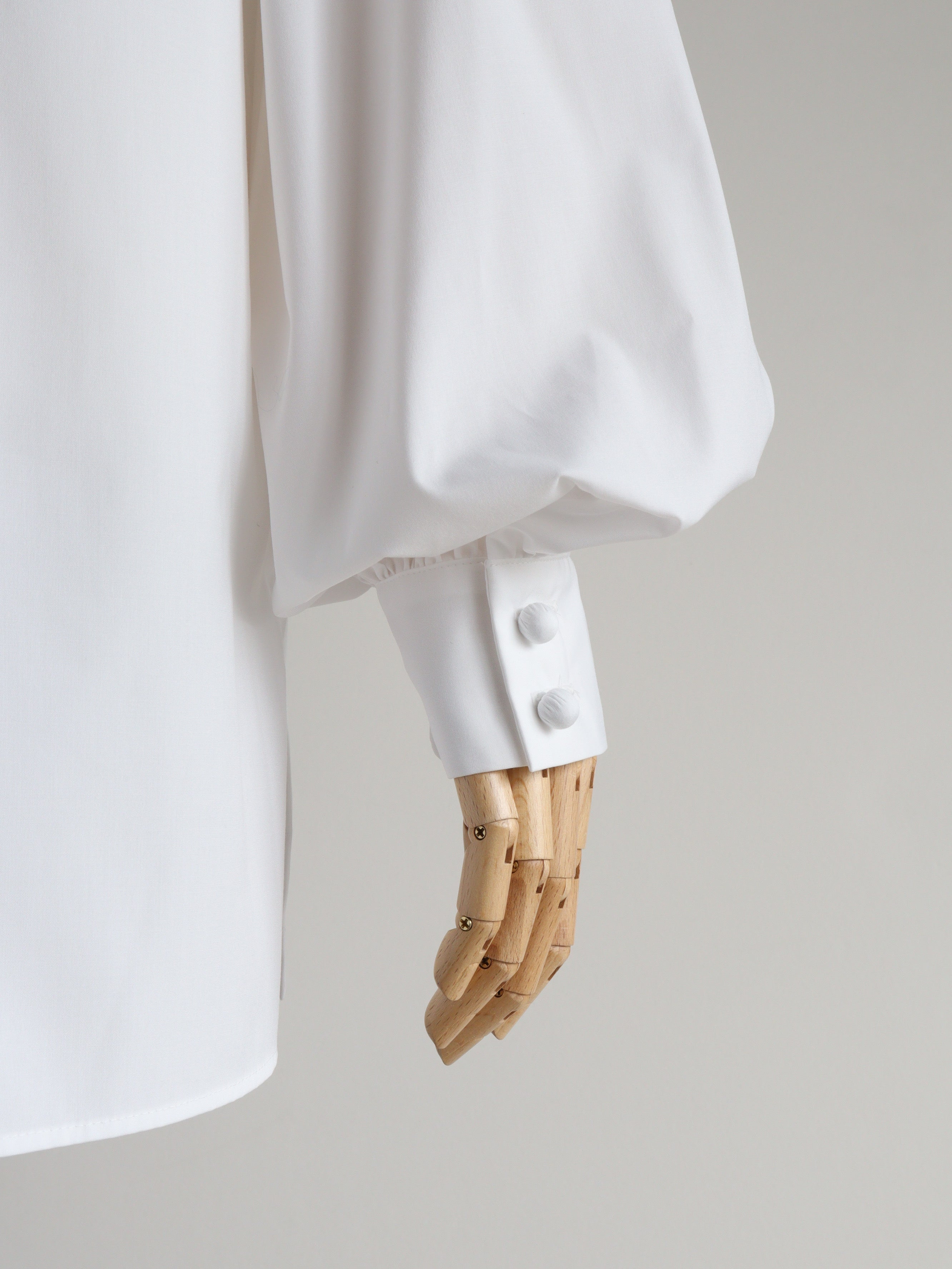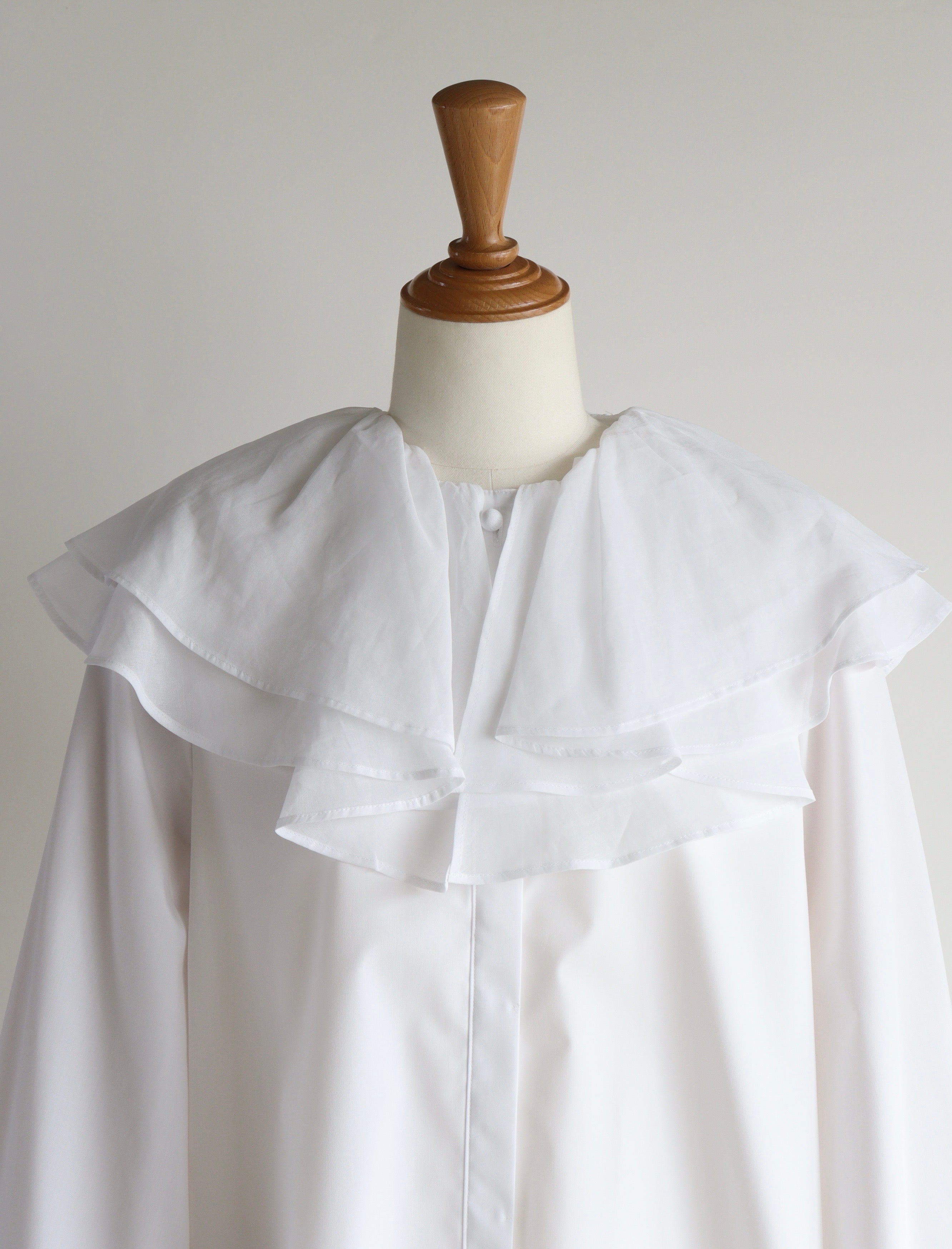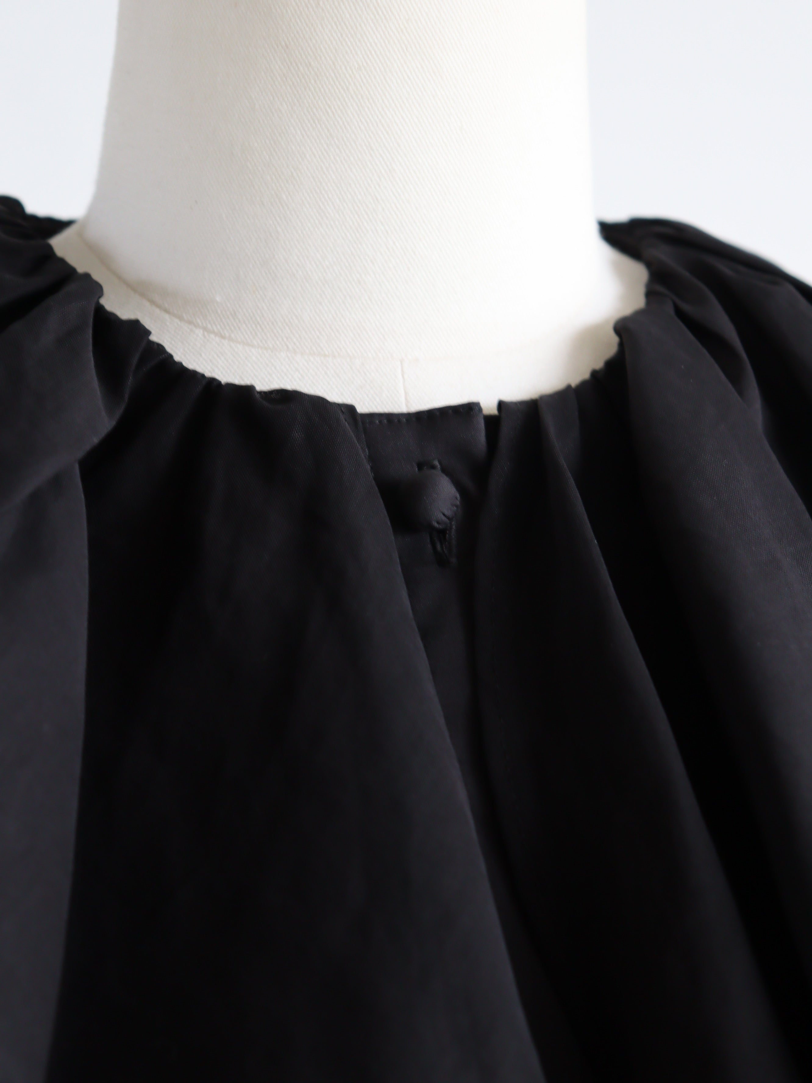 以前も大人気だった、ポピーブラウスの台襟をなくし、首元 をスッキリさせたポピーブラウスパートⅡ。今回はボタンがくるみボタンになっています。