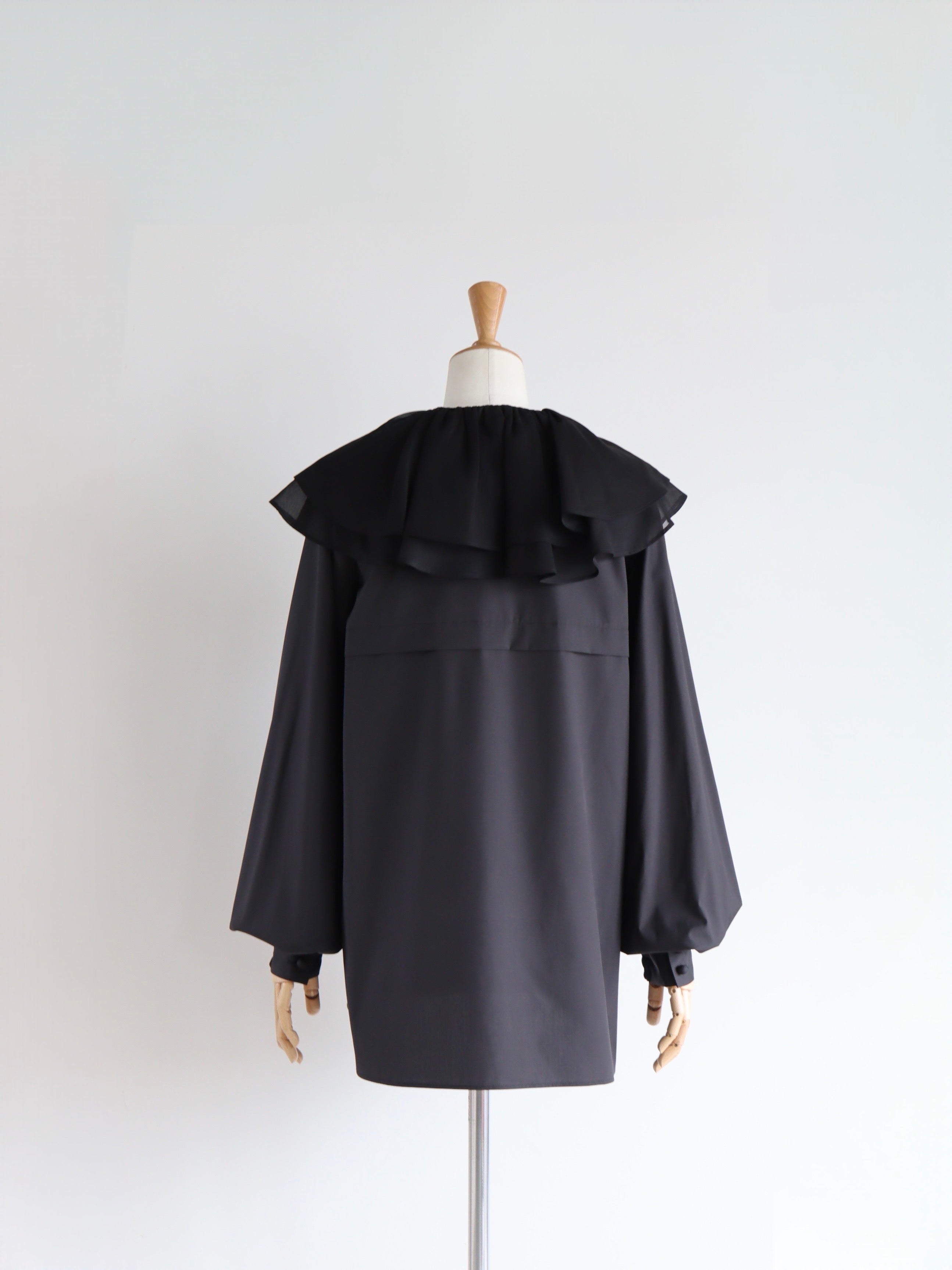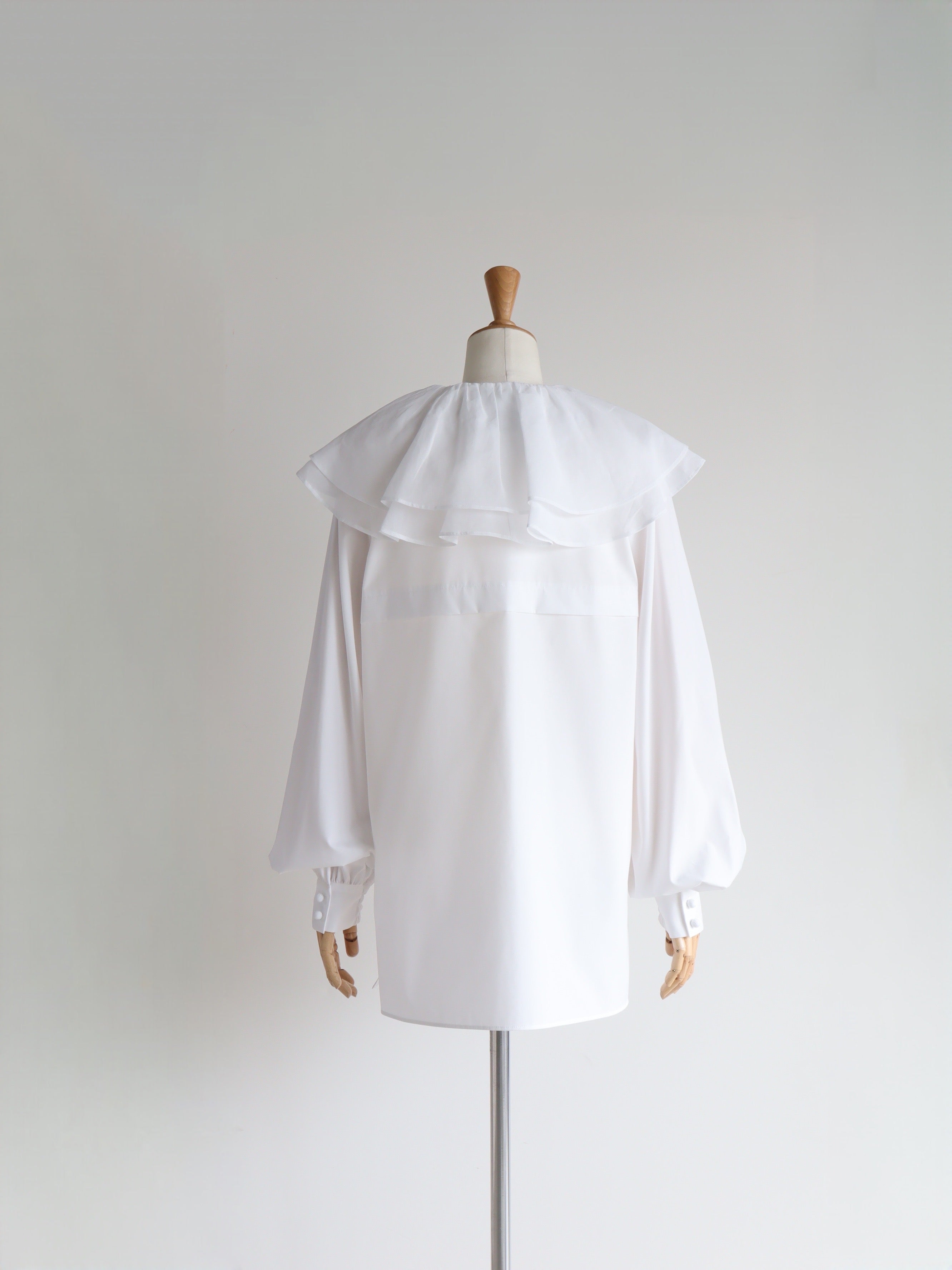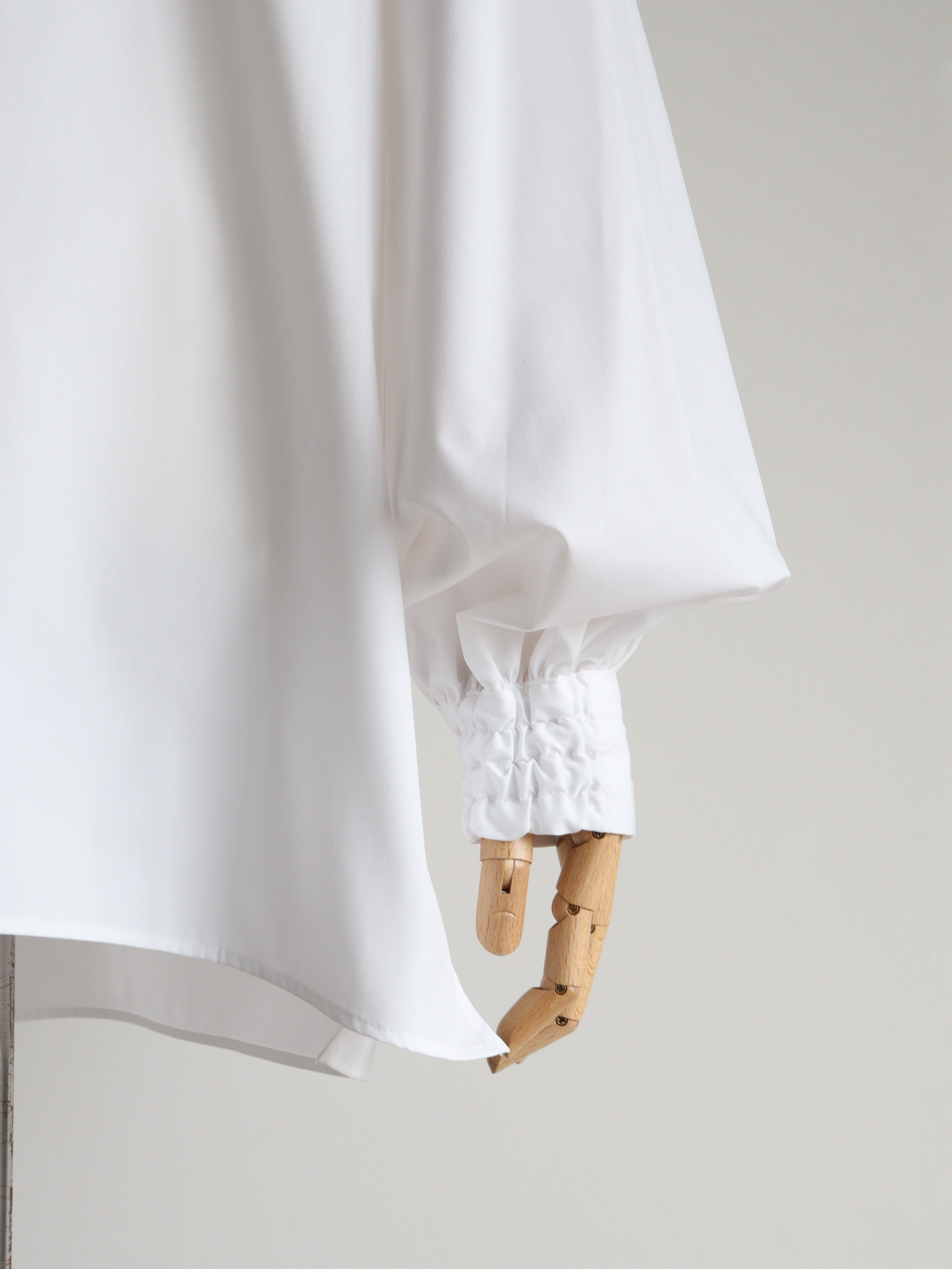 以前も大人気だった、ポピーブラウスの台襟をなくし、首元 をスッキリさせたポピーブラウスパートⅡ。今回はボタンがくるみボタンになっています。